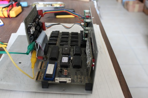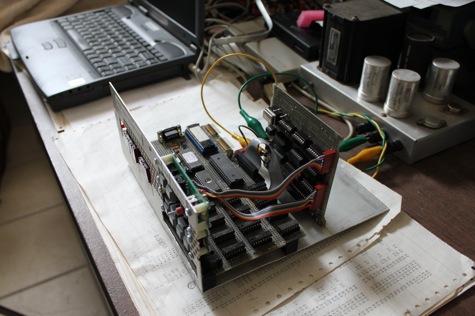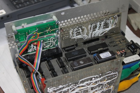 Left: The front panel computer running a test program off of the EPROM emulator.