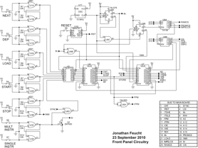 Right: A state machine diagram for the front panel switch logic, implemented on one GAL chip.