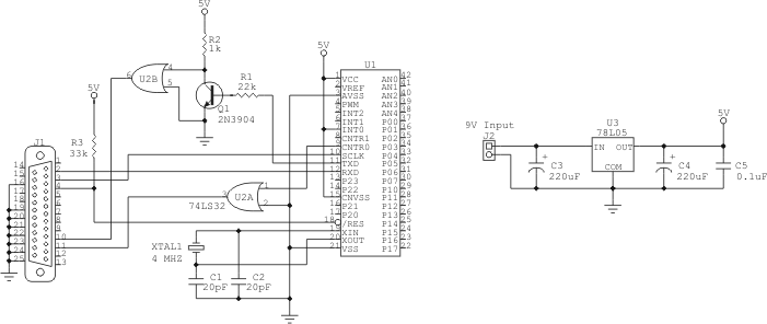 The following schematic was designed and first implemented by Mark Ludwig, although I made a few minor modifications to the circuit design.
