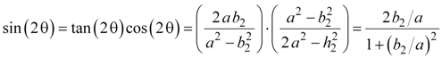 We now rearrange equations 15 through 18 so they are expressions of ratios of the sides of the triangles, then substitute in the correct trigonometric identities to relate the angle of the triangle. Equations 19, 20, and 21 are the double-angle trigonometric identities, and they fall directly out of equations 15a and 16b. Equation 21 combines equations 19 and 20 using the trigonometric identity sin(θ) = tan(θ) cos(θ).