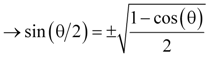 Equations 23, 24, and 25 are the half-angle trigonometric identities, and they fall directly out of equations 19 and 20. Equation 24 combines equations 22 and 23 using the trigonometric identity sin(θ) = tan(θ) cos(θ).